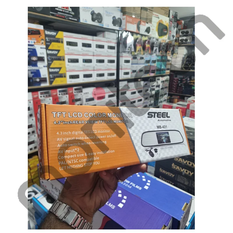 آینه مانیتور‌دار استیل مدل MB‑431 به همراه دوربین دنده عقب – ترکیبی هوشمند از آینه وسط خودرو با نمایشگر داخلی ۴.۳ اینچی TFT-LCD و دوربین عقب ضدآب با قابلیت دید در شب؛ این دستگاه به‌صورت اتوماتیک تصویر نمای پشت خودرو را هنگام دنده عقب‌گرفتن نمایش می‌دهد. نصب آسان روی آینه فابریک، نمایش خطوط راهنما برای پارک دقیق و ارزان‌قیمت بودن این مجموعه، آن را به انتخابی عالی برای افزایش ایمنی تبدیل کرده است .